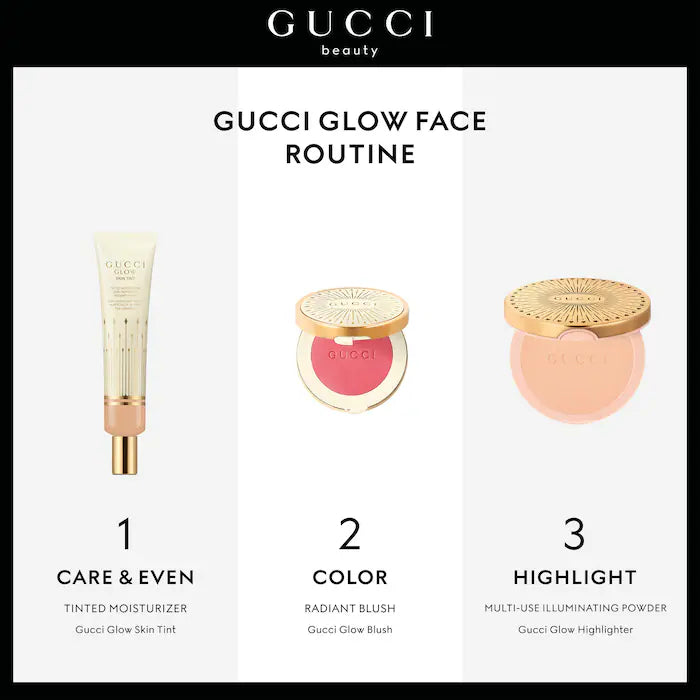 Disponible en cuatro tonos de larga duración y efecto luminoso, Gucci Glow Blush ofrece un brillo perlado con un acabado radiante y saludable. Enriquecido con ácido hialurónico hidratante y aceite de rosa negra para suavizar, este rubor ofrece una cobertura modulable y combina la textura sedosa de una crema con el acabado ligero de un polvo. ENTREGA DE 10 A 15 DÍAS