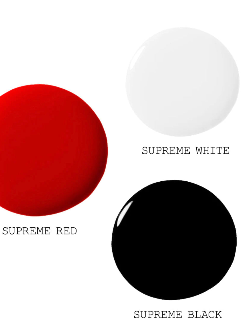 Supreme ha colaborado con todos en este momento, desde casas de moda de alta gama como Louis Vuitton hasta el sistema de metro de la ciudad de Nueva York. Para su última asociación, la marca de ropa urbana vuelve a asociarse con la legendaria maquillista Pat McGrath en un juego de esmaltes de uñas de edición limitada. ENTREGA DE 10 A 15 DÍAS