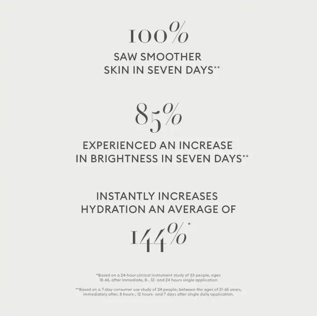 - Hialuronato de sodio: Visiblemente rellena la piel y suaviza la apariencia de las líneas finas.