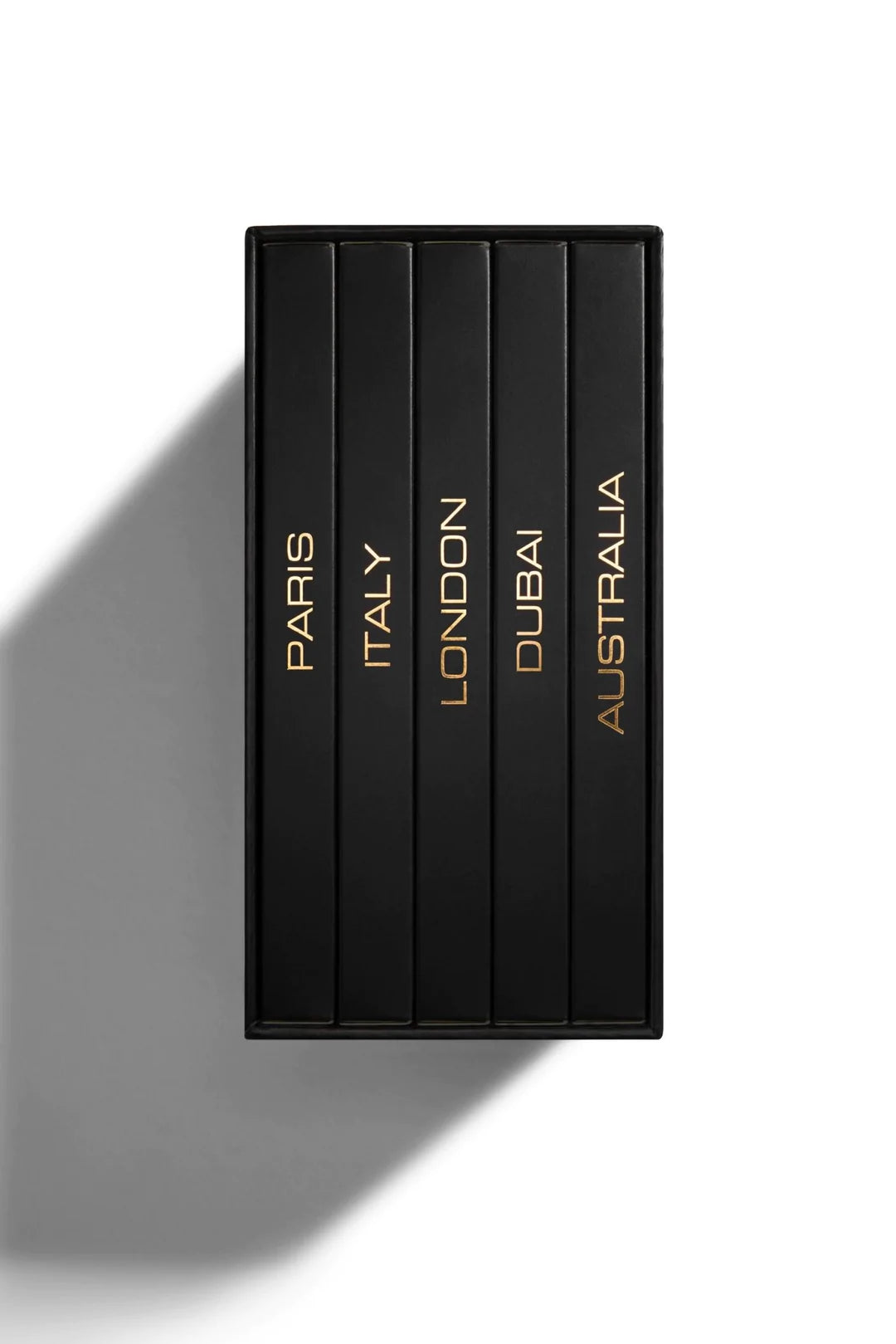 Esta temporada navideña, Scott Barnes diseñó su colección más codiciada hasta el momento, Voyager. Esta serie de cinco paletas se seleccionó en torno a los destinos favoritos de Scott, incluidos París, Italia, Londres, Dubái y Australia. ENTREGA DE 10 A 15 DÍAS