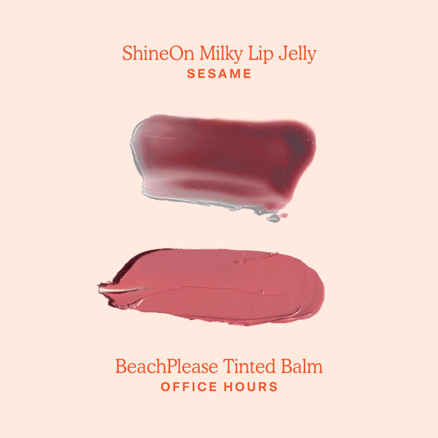 It's a Mauve-ment Duo le brinda esa apariencia sin esfuerzo que es 100 por ciento limpia, de alto rendimiento y aprobada para pieles sensibles. BeachPlease Cream Blush en Office Hours brinda un rubor natural cremoso y edificable en las mejillas y los labios en un malva bañado por el sol, y está hecho con ingredientes calmantes que aman la piel. ShineOn Milky Jelly Lip Gloss en Sesame da un toque jugoso de color semitransparente a los labios en un malva lechoso con el brillo de un brillo y cero pegajosidad. ENTREGA DE 10 A 15 DÍAS